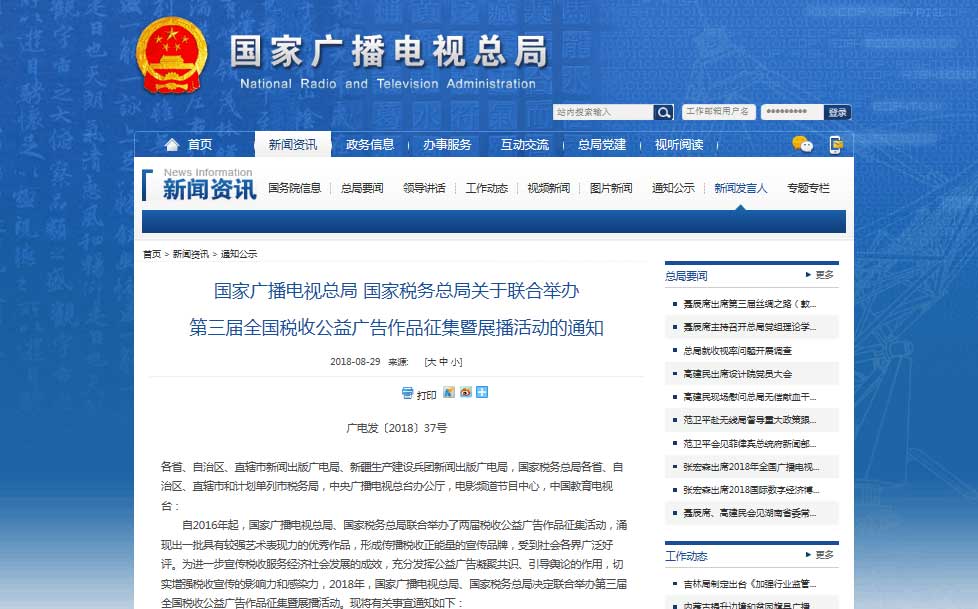 根據(jù)廣電總局頒布的《國家廣播電視總局國家稅務總局關(guān)于聯(lián)合舉辦第三屆全國稅收公益廣告作品征集暨展播活動的通知》現(xiàn)將有關(guān)事宜通知如下: